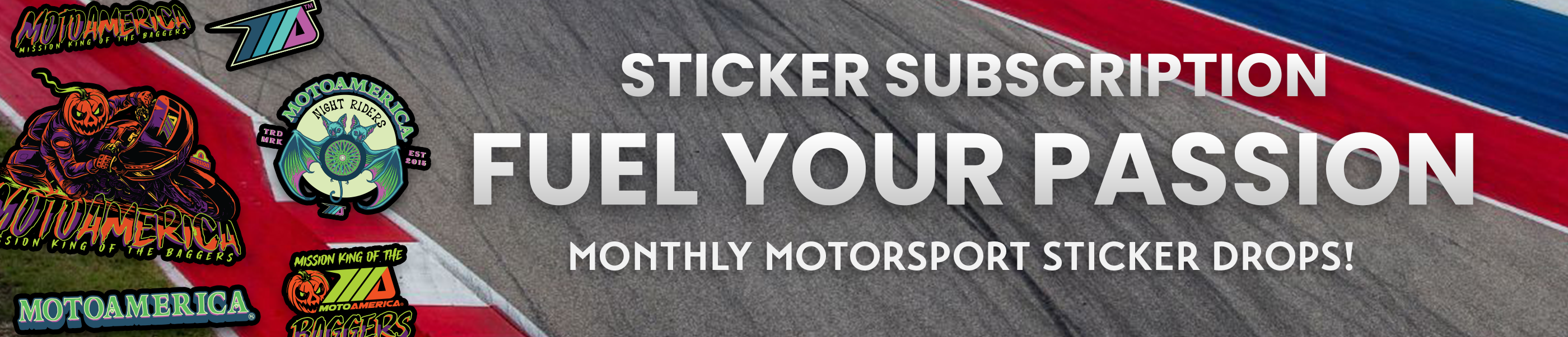 Get ready for a monthly sticker haul that screams motorsport madness. Every pack is built for fans who live life in the fast lane. From decals to details, each design brings a touch of the track to your world. Sign up and join the pit crew of racing sticker collectors.